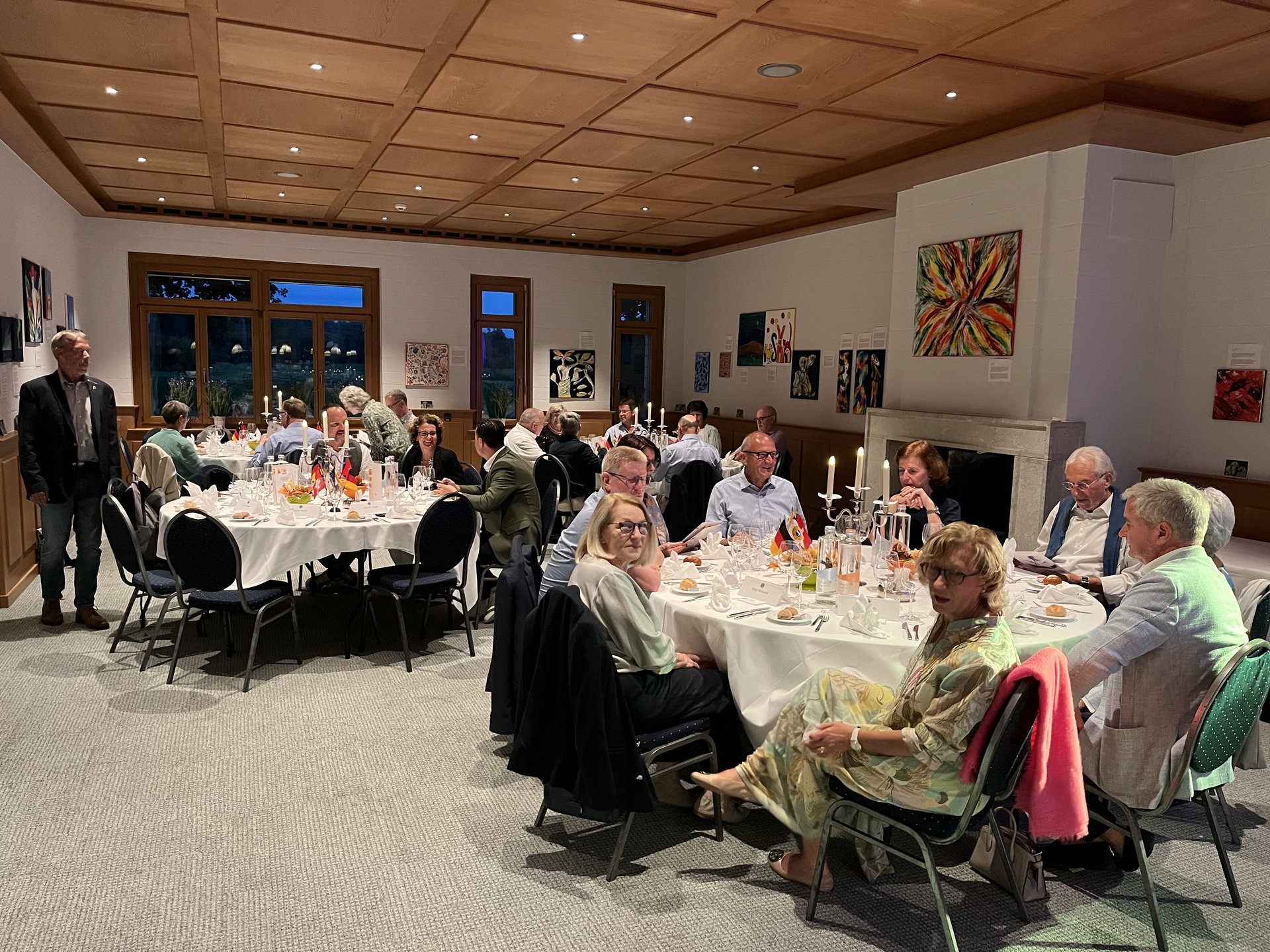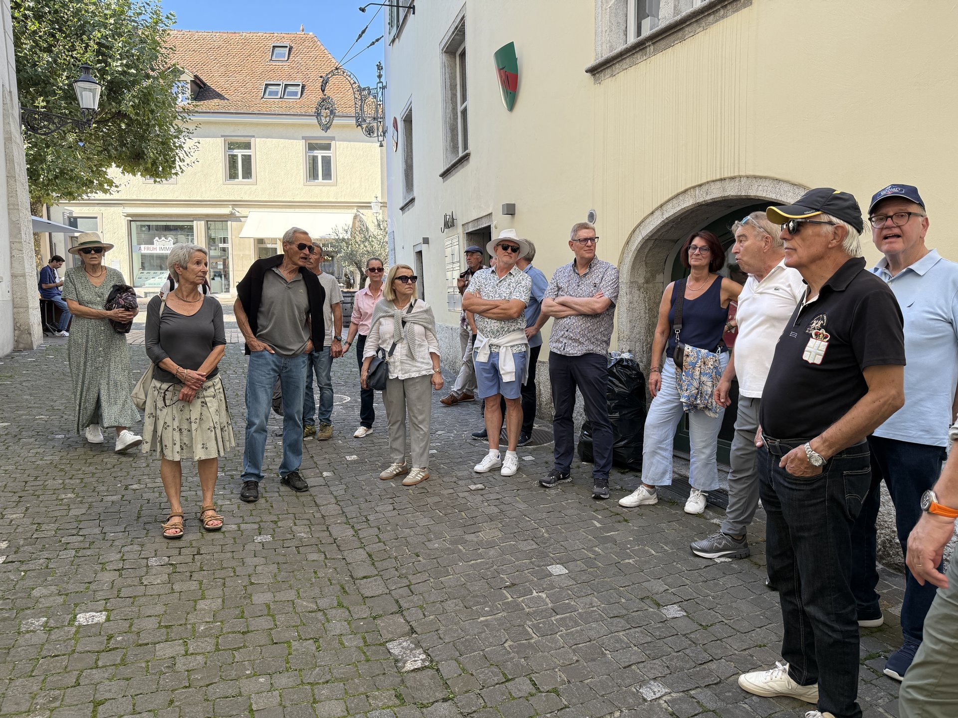 Am Samstag, 20. September trafen wir uns zur Mittagszeit mit unseren Lions-Freunden des LC Pforzheim-Enz aus Deutschland in Solothurn. Gemeinsam ging es anschliessend per Schiff auf der Aare nach Altreu, wo wir in der schönen Gartenterrasse des Restaurants «zum grünen Aff» unser Mittagessen einnahmen. Auf der Rückfahrt mit dem Schiff nach Solothurn konnten wir so richtig das schöne Wetter geniessen. Bei der Schiffanlegestelle wurden wir von Stadtführer Ernst Wettstein empfangen welcher uns auf unterhaltsame Art und Weise die Geschichte der Stadt Solothurn näherbrachte. Am Abend trafen wir uns im Restaurant des Golfclubs Wylihof in Luterbach zum Abendessen und gemütlichen Beisammensein mit musikalischer Unterhaltung durch «Old John and Himself». Am Sonntagmorgen machten wir uns mit der Seilbahn auf den Weg zum «Gipfel» des Weissenstein, den Hausberg von Solothurn auf 1395m. Auf der Terrasse des Hotel Weissenstein konnten wir noch die letzten Sonnenstrahlen bei einem Apéro geniessen. Das gemeinsame Mittagessen in der Weissenstein-Stube bildet den Abschluss unserer zweitägigen Jumelage.